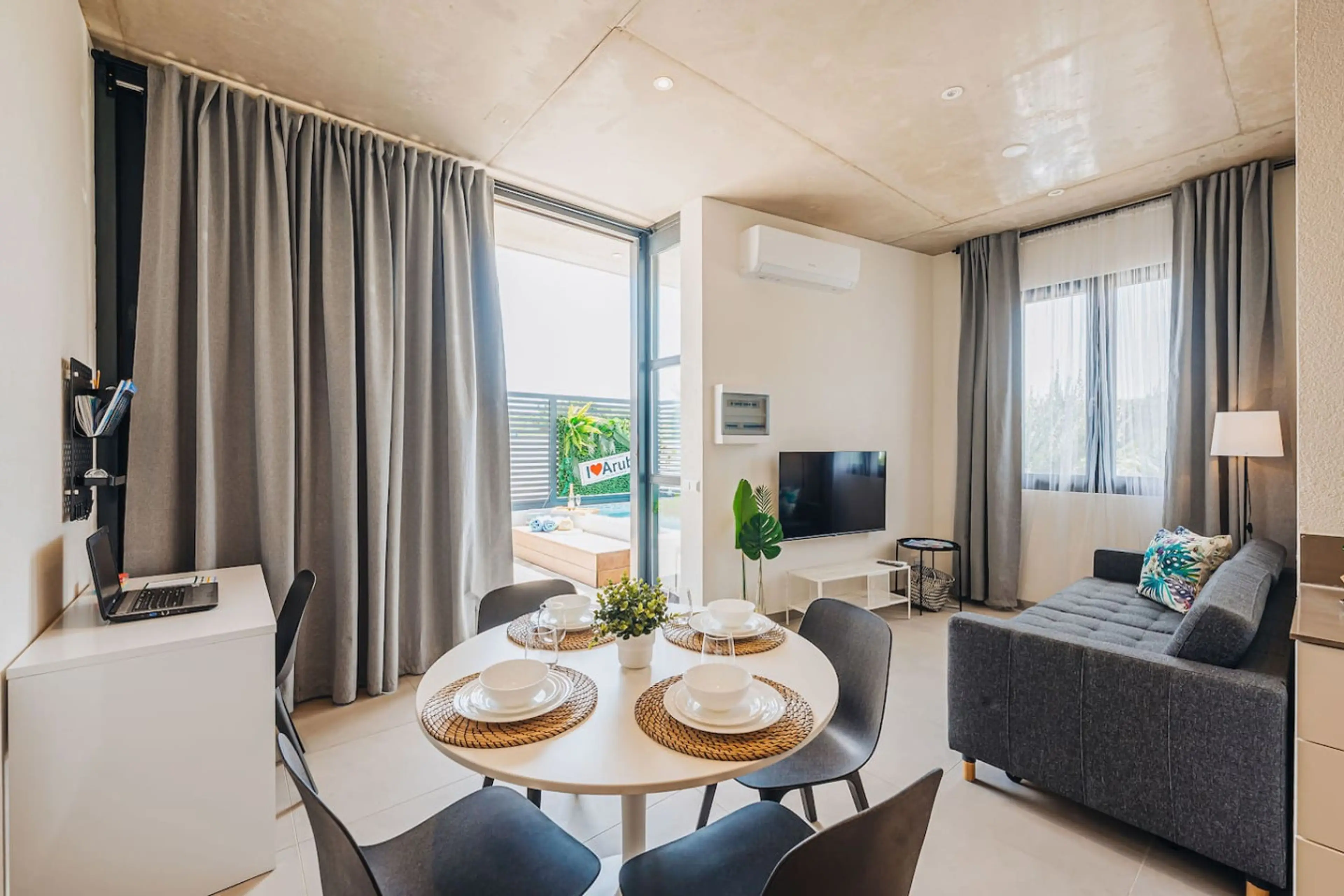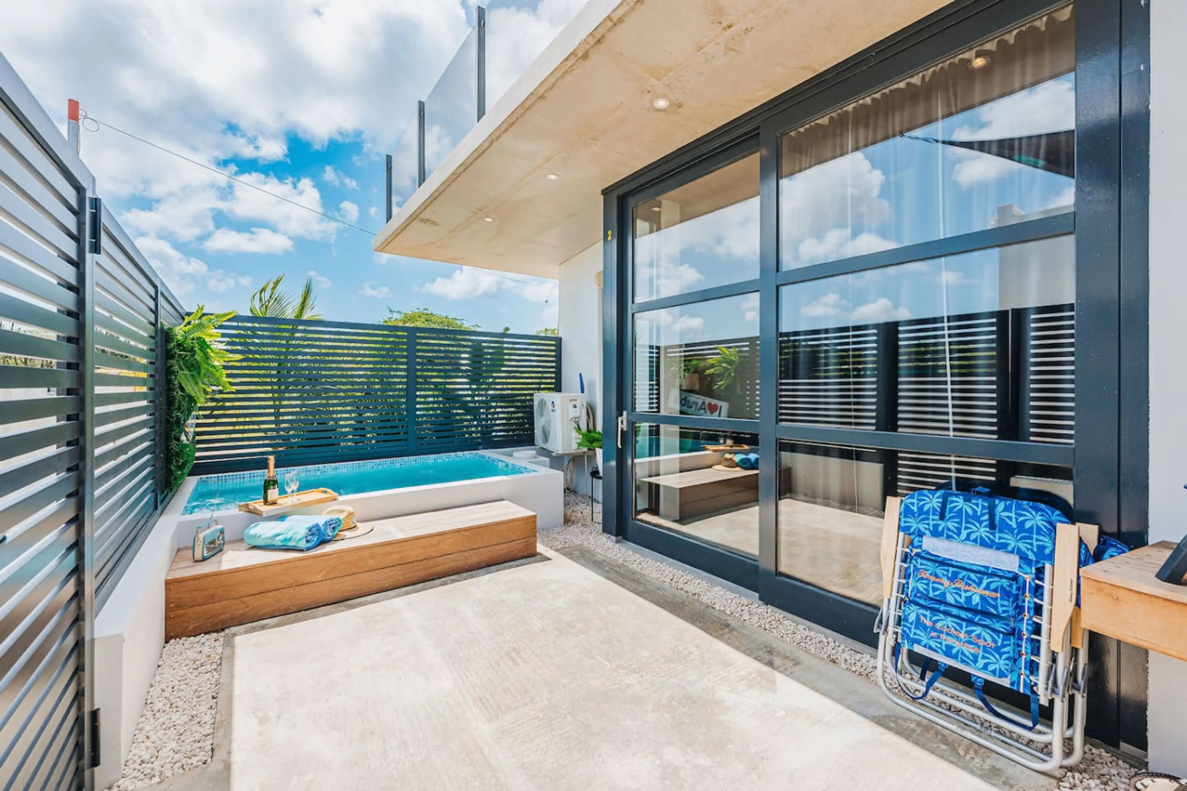 Escape to Biba Dushi apartment, perfectly located close to Eagle Beach and Superfoods. Palm Beach , Restaurants ,Casinos and night life are just minutes away . Featuring a fully gated and private backyard with it’s own plunge pool , a great king size bed and a comfortable sofa bed it is Ideal for co...